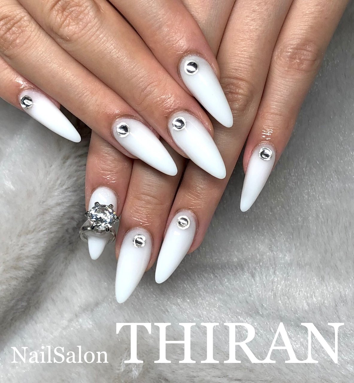 オールシーズン ハンド シンプル ビジュー ワンカラー Nailsalon Thiranのネイルデザイン No ネイルブック